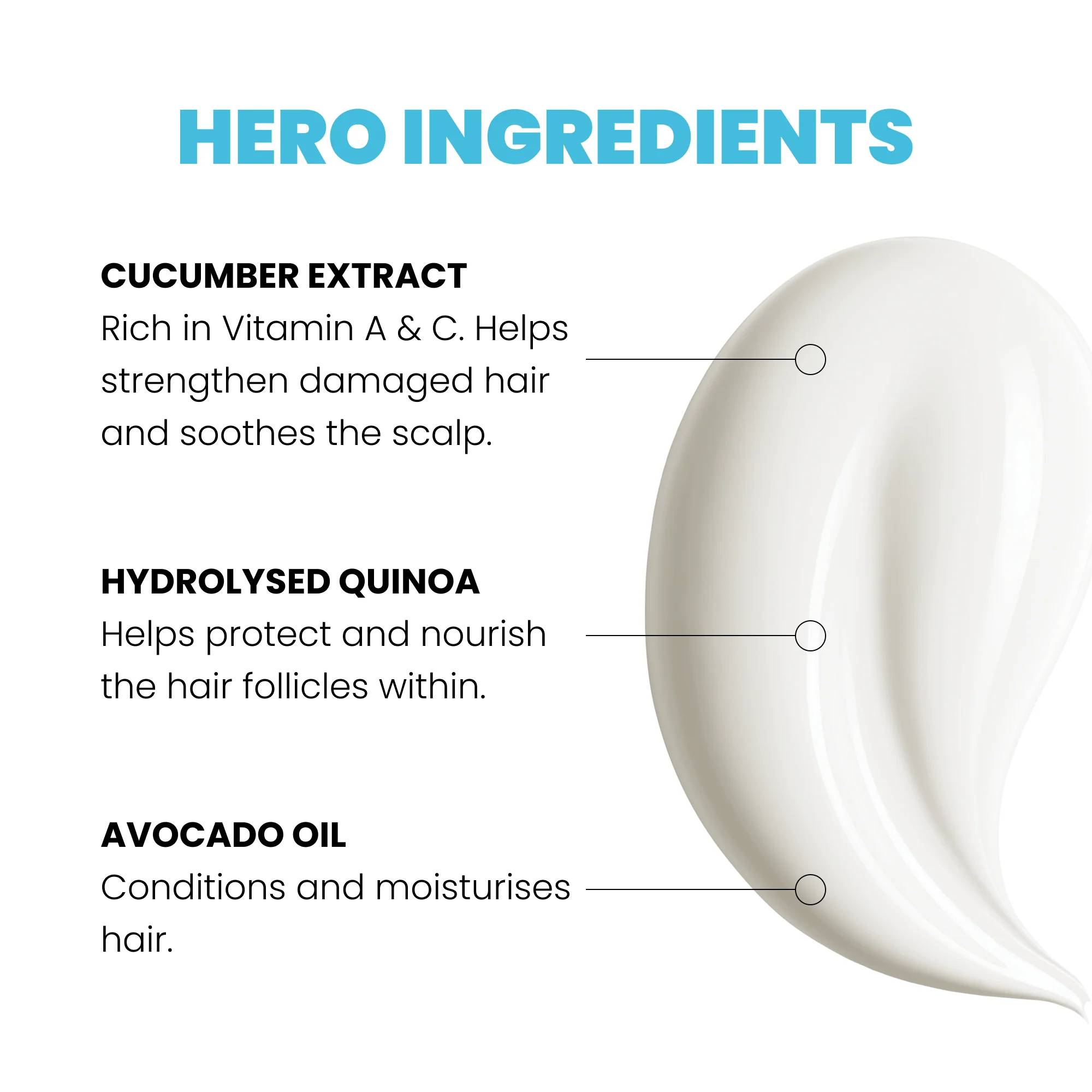 HYDRATE MY HAIR MOISTURE CONDITIONER is a ultra-nourishing conditioner with cucumber extract, hydrolyzed quinoa, & avocado oil protects hair against further dry damage. Suitable for dry scalps & all hair types: curly, coarse, thick, fine, straight, or wavy